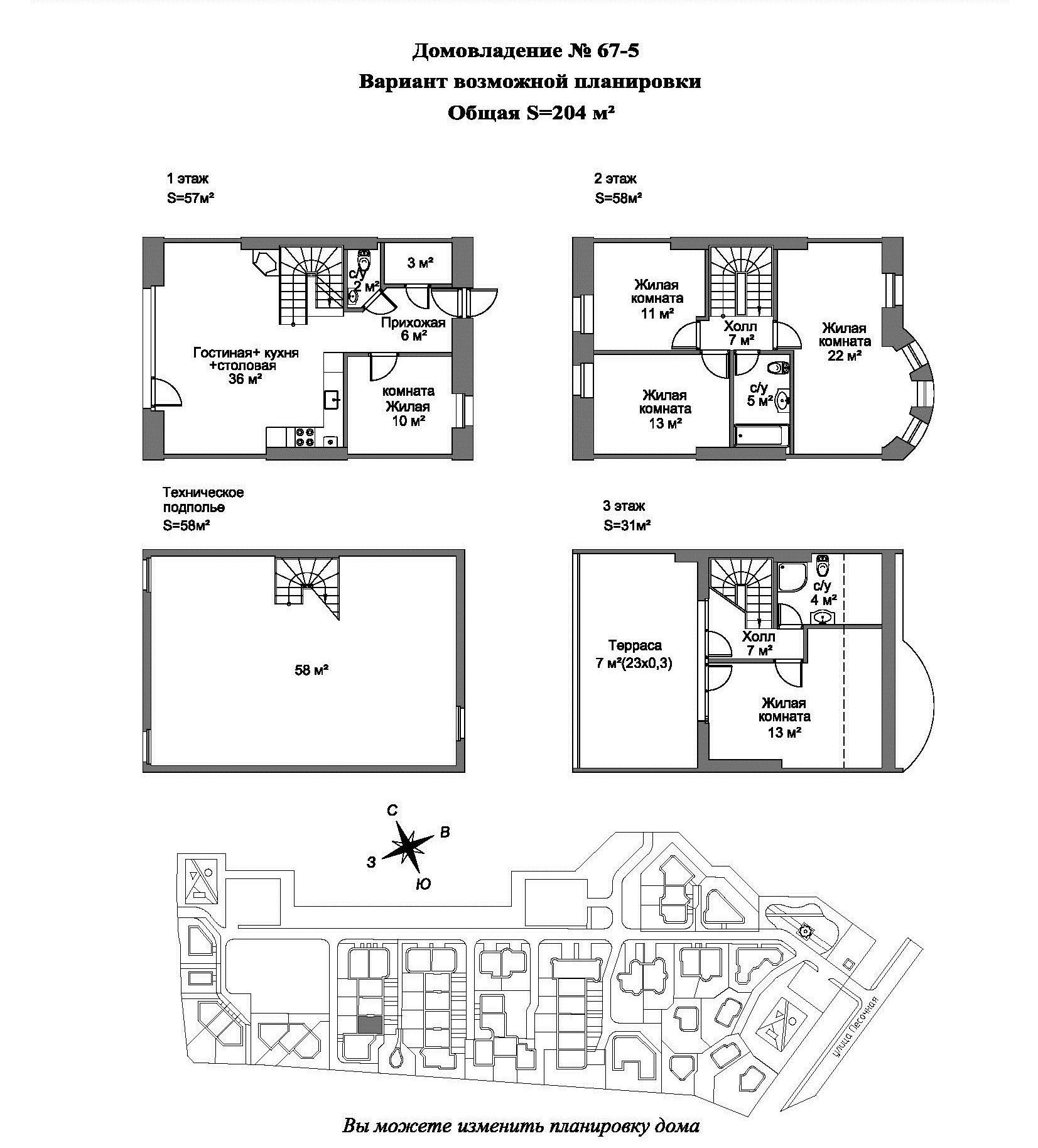 Комфортабельный таунхаус общей площадью 204 м2 имеет собственный земельный участок-патио, который может быть озеленен с использованием элементов ландшафтного дизайна, обустроен под зону отдыха и террасу для чаепития на свежем воздухе. Вариант возможной планировки:
